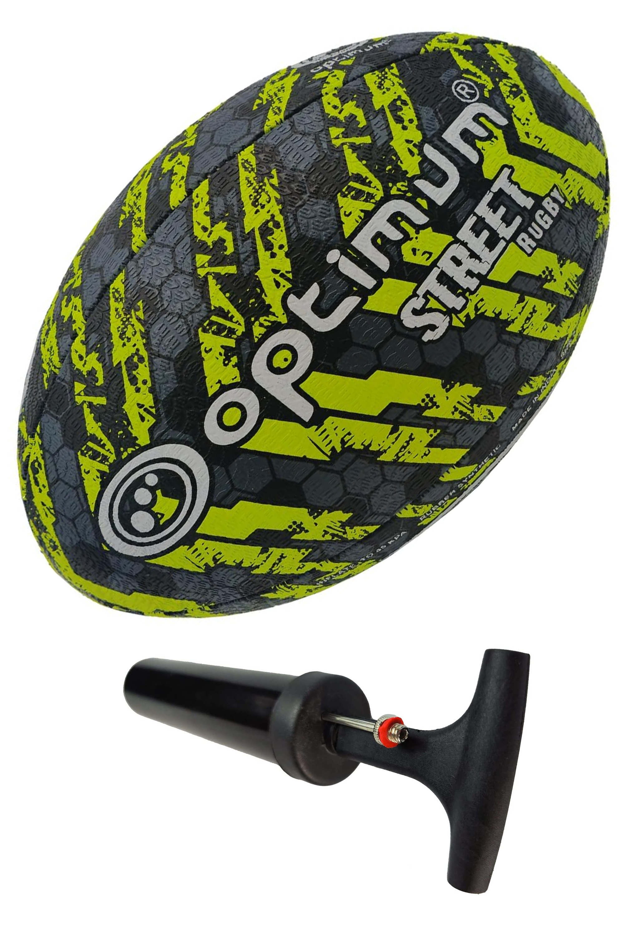 Experience superior performance and unmatched durability with the Optimum Street Rugby Ball. Crafted from high-quality synthetic rubber, this rugby ball is built to endure even the toughest playing conditions. Its unique black and yellow pattern ensures high visibility, making it easy to spot during play, whether on grass, turf, or concrete.The textured surface enhances grip, providing better control during matches and training sessions. Available in various sizes, including mini, size 3, size 4, and size 5, the Optimum Street Rugby Ball caters to players of all ages and skill levels. Whether you’re a beginner or an experienced player, this rugby ball is designed to meet your needs and help you perform at your best.Elevate your game with the Optimum Street Rugby Ball, a reliable choice for outdoor sports enthusiasts seeking quality and performance.